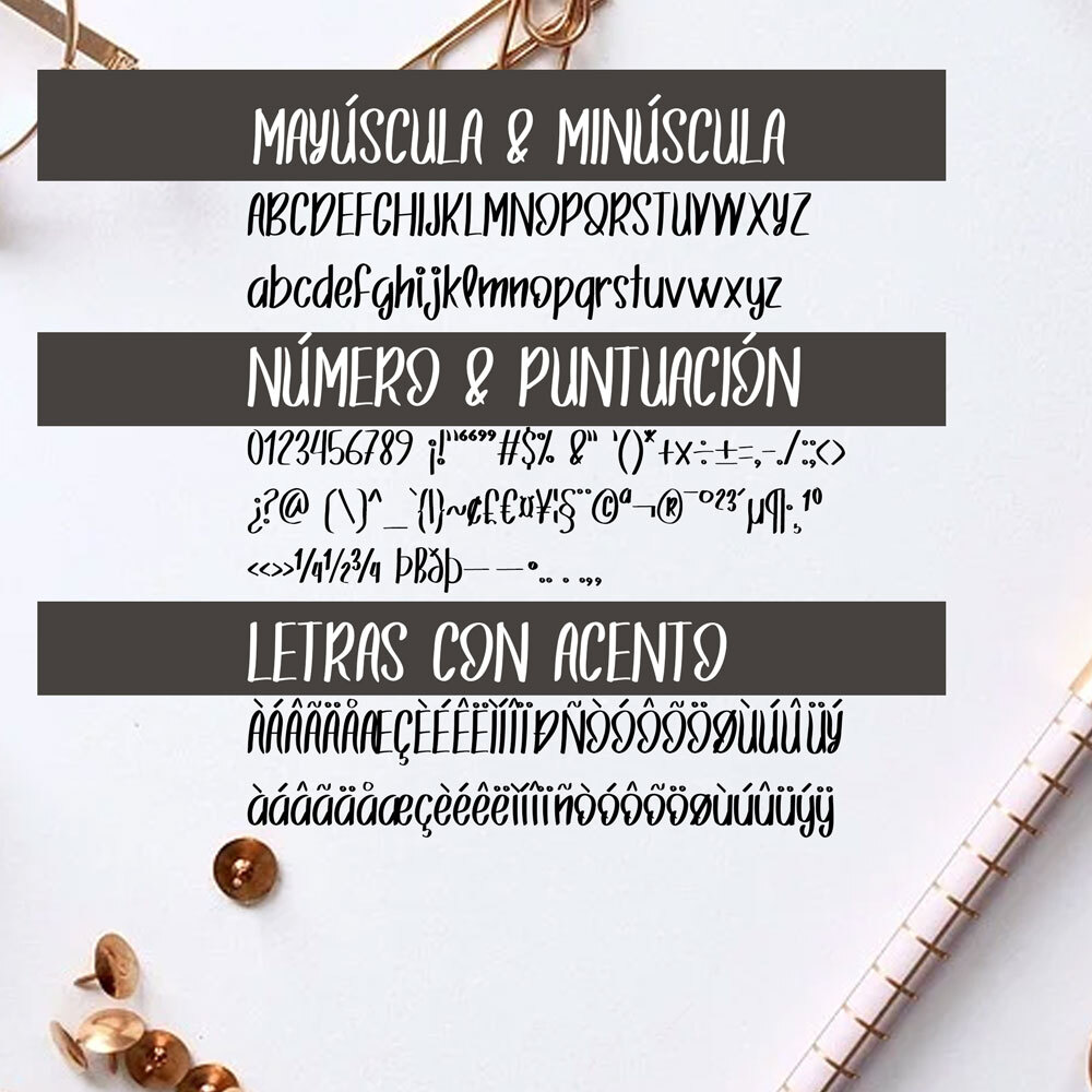 Esta fuente es perfecta para: tomar notas, publicaciones de blogs, marcas, tarjetas de felicitación, álbumes de fotos, carteles, productos físicos (como tazas, camisetas, etc.), decoraciones y mucho más.